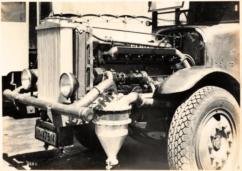 LKW fährt mit Generator Gas aus Diergardt Kohle (Zeche Diergardt-Mevissen im Raum Duisburg-Rheinhausen)